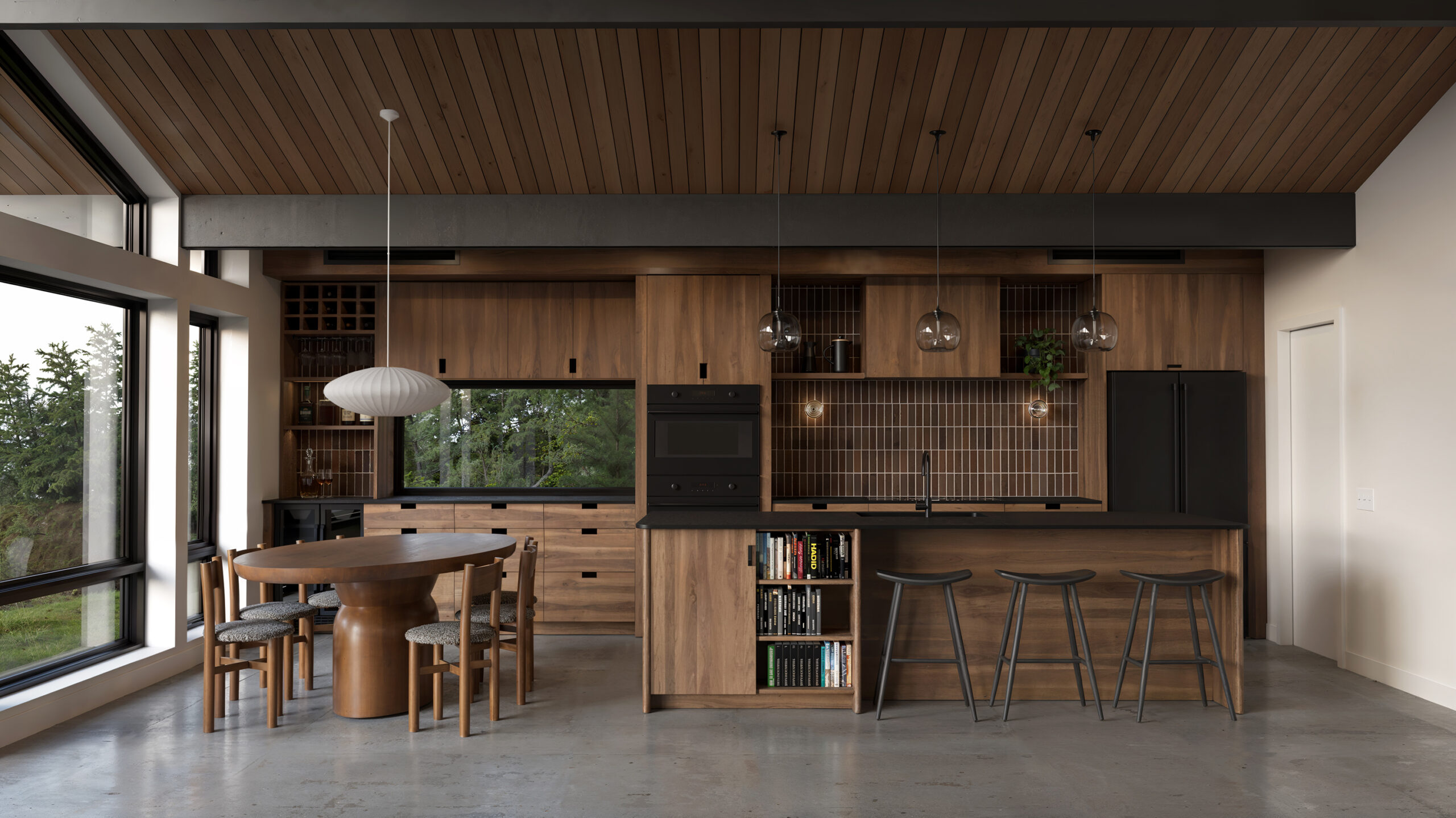 This set of renderings was created for Rummer Development, a company inspired by the legacy of mid-century modern architecture in the Pacific Northwest. The project is located in Kelso, Washington, and features a home designed to blend clean modern lines with natural surroundings.